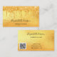 En elegant och ett glamoröst affärskort på ett faux guld tittar bakgrund som dekorerats med faux glitter drops, färgdroppning på framsidan. Elegantens vita, stil-bokstäver. Anpassa och lägg till ditt namn, titel, kontaktinformation och din egen QR-kod till webbplatsen adress.