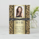 Vackert svart och guld glitter leopard examens tillkännagivande. Du kan enkelt anpassa detta eleganta svarta och gyllene examens tillkännagivande genom att helt enkelt lägga till ditt foto och evenemangsinformation i den teckensnittsstil och färg och formulering du väljer. Du kan flytta banden och ta bort om du föredrar.
