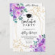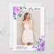 Klass 2023! Chic vår, sommarens lila, lavender och gröntens blommigt vattenfärg och guld glitter konetti typography studentfest inbjudan med handmålade blommor, grönt vattenfärg löv grenar med guld geometrisk terarium ram på vit bakgrund, lägg till ditt foto på baksidan