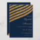 Klassiskt guld glitter och marinblåa, sofistikerade bröllopsinbjudningar i abstrakt. Den här snyggtens inbjudan till modern abstrakt är perfekt för alla klassofistikerade och sofistikerade chic. Den här designen är perfekt för en händelse i trendig och elegant party. Anpassa den här designen med egen information om meddelande och personlig. Alla designer skrivs ut