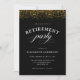 Den här inbjudan från pension-partiet erbjuder en klassdesign accentuerad med elegant-skripttext och guld glitter-konfekti med svart bakgrund.