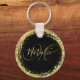 Guld Glitter Monogram Namn Svart Glamorös Nyckelring