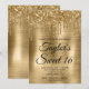 Skapa din egen snyggt 16-årsfirandeinbjudan till din dotter. Dekorativ faux sparkly guld glitter droppar grafik från ett övre gräns. Den digitala konsten i bakgrunden har en glansig, blankt, metall, sömlös plattfolie. Anpassa inbjudan till vit text färg eller teckensnitt stilar. Även texten "Sweet 16" är anpassade. De lyxgnistor, glitter och folie som finns skapas med konstnärligt inslag som skrivs ut som ett foto.