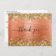 Guld Glitter Orange Korall Folie Födelsedags Tack Vykort
