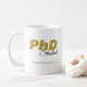 En doktorsexamen i student mugg som sätter guld glitter i din akademiska strävan. Den här guld, svarta och vita designen innehåller ett anpassade namn. Anpassa bara namn, lägg till mugg i din kundvagn och sedan gnistra när du kommer tillbaka till den forskningen. Guld Glitter PhD Student Kaffe Mugg Holiday Design | ©Melissa Patton - Designer