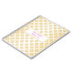 Rhomboider i guld glitter med monogrammet över vit bakgrund