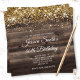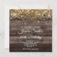 Guld Glitter Rustic Bistre Brown Wood Birthday Inbjudningar