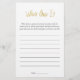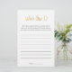 Denna giriga möhippa i stil "Vem är jag" kommer att bli älskad av de flesta av de blivande briderna. Den romantiska designen har gyllene bokstäver och en rosegold marmorbakgrund på flygarens baksida. Du kan anpassa kortets baksida med den framtida bridens namn och möhippans eller möhippans datum. Lägg till anpassningsbarnas ordalydelse till den här designen genom att använda rutorna "Redigera den här designmallen" på objektets höger, eller klicka på knappen "Anpassa den" för att ordna texten, ändra typsnitt, teckensnittet färg och färgen.