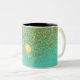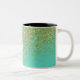 Guld Glitter & Teal Aqua Glam Anpassad Monogram Två-Tonad Mugg