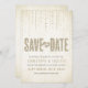 Den här fina spara datum meddelande-designen från The Spoted Olive™ har en söt mjuk guld-bakgrund med en bild av glatt gems och orden "Save the Date" är stilistigt typset och fylld med en bild av guld glitter. OBSERVERA: DEN HÄR KONSTRUKTIONEN INNEHÅLLER ENDAST EN SKRIVEN BILD AV GLITTER; DET FINNS INGEN FYSISK GLITTER SOM ANVÄNDS ELLER INGÅR I; DET FINNS INGA EMBELLISTER. DET HÄR ÄR EN FLAT SKRIVEN INBJUDAN. Copyright 2013-Present | Spoted Olive™ | Alla reserverade Höger