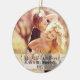 "Guld Glitter Twinkly Vår första jul, mr n Ceramic Ornament w Bröllop Photo." Väntande, mousserande guld glitter-stjärnor snurrar över den nedre delen av fotot och belyser manusgrafin, typografitexten med blomningar som lyder: "Vår första jul" men kan ändras. Ert namn och bröllop-år är också personlig i ett stort gräns som gör det möjligt för er fotografi att gå igenom och som har en övre gräns för glitter och grund gräns. Enkelt. Elegant. Tidlös! Copyright, Audrey Jeanne Roberts.