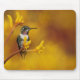 Enbuktad Woodstar Hummingbird värma sig i det sena eftermiddagsolskenet i ett guld- glöd av gula kängurutassblommor.