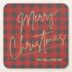 God jul-text i ett faux-guld-folie och ditt namn i chic är skrivet på dessa röda och grått buffalo plaid mönster papper underlägg, perfekt för helgdagarna. MATCHING-objekt i vår butik.