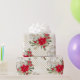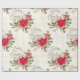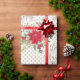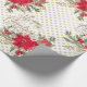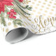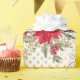 Vackra röda poinsettias med hullbär, gräs-kvistar och vit bakgrund med guld-prickar. ’God jul’ i guld typografi