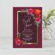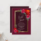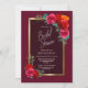 En elegant guld-gränsad burgundisk blommigt inbjudningskort för möhippan.