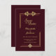 Ett modernt burgundi-bröllop-spara-det-aktuella annonskort med snyggt guld faux-gräns.