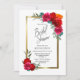 En elegant guld-gränsad röd blommigt inbjudningskort för möhippan.
