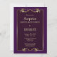 En elegant lila-middagsinbjudan med födelsedagspresent med en lila ram och guld löv-trim.