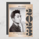Elegant- och modernt studenten-anslagskort med student bästa lodrät (eller porträtt) och studenten i överdimensionerade fet GRÅTT-bokstäver, med tre anpassningsbar för namn, högskola eller skola och år över en metallisk faaux guld bakgrund. Baksidan har ett annat foto och mer information om student. Ett MASCULINE studenten-annonskort i eleganten med en modern och sofistikerad utformning som gör att din favoritbild kan skina!