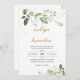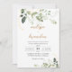 Guld Greenery Eucalyptus Monogram skript Bröllop Inbjudningar