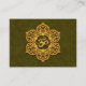 En guld- gult Om planlägger sitter insida av en stylised lotusblommablomma. Nedgångar för en skugga på det djupt - grön bakgrund skapar blomman för att verka att flyta precis ovanför ytan av visitkorten. Sex eleganta löv att ne ut från centrera av designen för att skapa ett härligt symmetriskt mönster. Denna stilfulla yogadesign är en slå framställning av detta andliga symbol.
