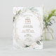 Denna bröllopsfestinbjudan är det perfekta sättet att inbjuda dina vänner och familj att fira din kommande bröllopsdag. Designen har en fantasifull och bohemisk stil med en falsk guldram, svaga sagegröna botaniska motiv och falska guldklickar. Inbjudan är tryckt på högkvalitativt kartongpapper och kommer med kuvert för enkel försändelse. Framsidan av inbjudan har en geometrisk design och fantasifull grönska som sätter tonen för din speciella dag. Den innehåller utrymme för alla nödvändiga detaljer om din bröllopsfest, inklusive datum, tid, plats och annan viktig information. Baksidan av inbjudan är prydd med ett vackert falskt guldmönster som ger den perfekta slutliga touchen till denna unika design. Oavsett om du har en traditionell eller bohemisk bröll