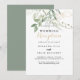 Denna guldgröna lövverk kalligrafi bröllopsinbjudan är perfekt för en rustik efterfest efter vigseln. Denna konstnärliga design har handritad akvarell guld och grönt lövverk som inspirerar till naturlig skönhet. RSVP-kort säljs separat, eller så kan du lägga RSVP-detaljerna på baksidan eller botten av kortet.
