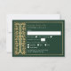Fira din speciella dag med dessa kungliga medeltida svärd bröllop RSVP-kort mot en grön bakgrund. Du kan anpassa detta ytterligare genom att klicka på "PERSONALISERA"-knappen. OBS: Guld på denna artikel är INTE äkta folie och är tryckt i platta färger