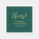 Den här personligen av chic-dockan kommer att lägga till snyggtens detaljer till din speciella dag. Den här party napkin-designen i anpassningsbar har snyggt guld-typografi " Cheers!" och enkel konfektion med en framväxande grönt-bakgrund färg. Matchande födelsedagsfest inbjudan och mallar finns i min butik BaraBomDesign.