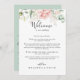 Brev är en perfekt för ett modernt bröllop för detta guld-blommigtens löv i bröllop. Utformningen har handritad guld och grönt botaniskt löv med rosa, och vita blommor, som inspirerar naturskönheten. Anpassa fronten med ett välkomstmeddelande till dina gäster och till namn. Anpassa baksidan med schemat för händelser och annan användbar information.