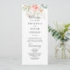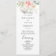Bröllopsprogrammet för blommigt av lövning i grönten i guld är perfekt för ett modernt bröllop. Utformningen har handritad guld och grönt botaniskt löv med rosa, och vita blommor, som inspirerar naturskönheten.