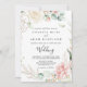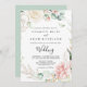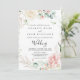 Den här guld gröntens lövinbjudan till blommigt på framsidan och baksidan är perfekt för ett rustiskt bröllop. Utformningen har handritad guld och grönt botaniskt löv med rosa, och vita blommor, som inspirerar naturskönheten. Spara papper genom att på baksidan av inbjudan ange mer information i stället för på ett separat visitkort.