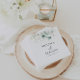 Kompilera din klassiska bröllop-händelse med guld grönt löv-kalligrafi-napkins från bröllop. Konstruktionen har elegant vattenfärgsgrönt och guld eucalyptus löv.