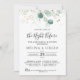 Den här grönten i guld lämnar kalligrafi-middagsinbjudan är perfekt för ett klassiskt bröllop-repetitionsmöte i firande. Konstruktionen har elegant vattenfärgsgrönt och guld eucalyptus löv.