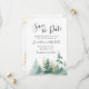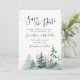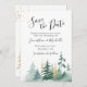 I den inspirerande bröllop spara datum framställs en strålande vattenfärgskonstruktion för skogsmark med elegant som mousserande guld och grönt gräs träd. Baksidan är Bible Verse Sång i Solomon 3:4: "Jag har hittat den ende min själ Kärlek." Brans val för höst, vinter och jul.
