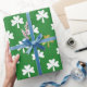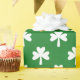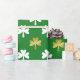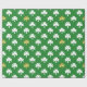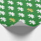 Inpackning av papper för st patrick's day i grönt med ett mönster av vit- och guldshamrocks.