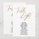 Den här enkla utformningen av eleganten har "Bord åtta" som återges i ett modernt handskriftsteckensnitt och som utmärks med en faux-metallisk guld-effekt. Teckensnittet för namn kan ändras om du vill. Precis som färg i bakgrunden. Information visas både fram och bak. 151