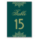 Elegant numrerad bordskort med elegant henna-konst mot en havsgrön bakgrund.