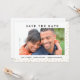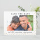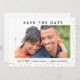 Ett mycket sött och romantiskt sätt att spara datumkortet innehåller ditt pars foto omgivet av små guld-hjärtan. På framsidan placeras hjärtan i höger- och grund-marginalen. Spara datumet skrivs över bild överst. En textlinje längs grund i bild gör att du kan anpassa ditt budskap. Gratulerar på bröllop!