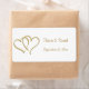 Guld hjärtbröllopsmärkning. Skriv din information eller klicka på "anpassa" för att redigera texten. Perfekt för bröllopsinbjudningar, inbjudningskort för möhippa eller bröllop tack för dina kort!