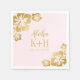 Elegant guld Hibiscus blommor och personlig initialer och text på en napkin-perfekt för en bröllop i Hawaii eller Möhippa, Bachelorette Party, Rehearsal Dinner eller Reception som firar ett tropiskt tema struktur. Bakgrund färg kan redigeras eller tas bort för att koordinera ditt färg-program.