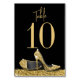Elegant Glam Black och Guld High Heel Stiletto Shoe-kort med trendig och modern utformning och typsnitt, perfekt för hennes födelsedagsfest, möhippa, Bordsnummer business event, gullig 16, quinceanera, mode eller bat mitzvah som firar luxe och party med högklumpskotema.