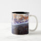 Detta panorama- avbildar shows frakten i avståndet, med månen bak den och att kika till och med molnen.