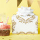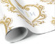 Guld hjärta på vitt dammigt blått monogram bröllop presentpapper