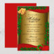 Guld Red & Grönt Julinbjudan till Julfest. Elegant Holly Lämnar Bell-design.
