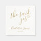 Denna stilrena guldfärgade "hon sa ja"-servett för bröllopsfest kan anpassas med din bröllopsfest detaljer. Designad av Thisisnotme
