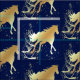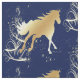 Guld häst med guld accenter på mörk blått vävnad. Bra för temaprojekt i helgdag.