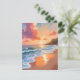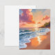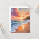 Guld Hour Strand Solnedgång Akvarell Målning Kort