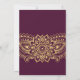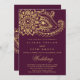 Det här indiska bröllopskortet för paisley-bröllopet i guld är perfekt för ett elegant bröllop. Den mehndi-designen har en underbar blommigt henna mandala och paisley motif på burgundisk bakgrund. Obs! Den här designen har inte äkta guld-folie. Det är en grafik av hög kvalitet som framställs som guld-folie.