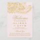 Det indiska bröllopsprogrammet för rosa i guld är perfekt för ett elegant bröllop. Den mehndi-designen har en underbar blommigt henna mandala och paisley motif på en ljus rosa bakgrund. Inkludera namn i bruden och trimmen, datum och plats för bröllop, tack, tjänstens ordning och brudens sida. Beställ alla program som har monterats eller inte har monterats. Obs! Den här designen har inte äkta guld-folie. Det är en grafik av hög kvalitet som framställs som guld-folie.